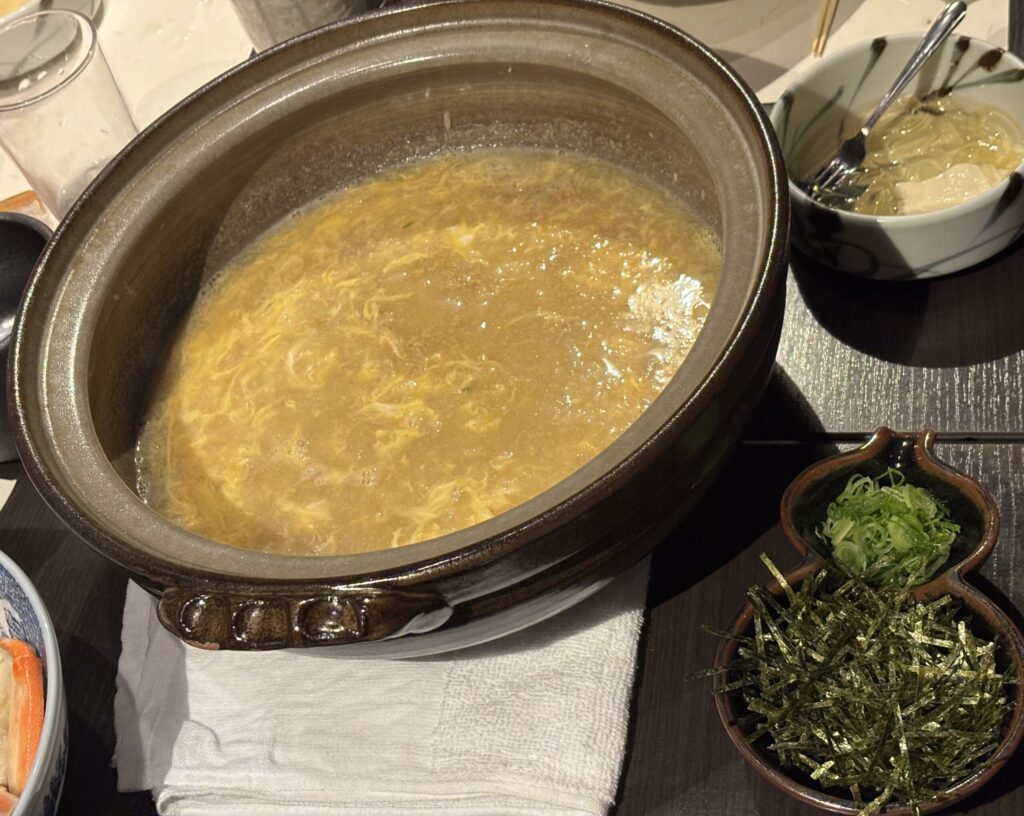 その後また鍋を引き上げて雑炊を作ってから持ってきてくれました。