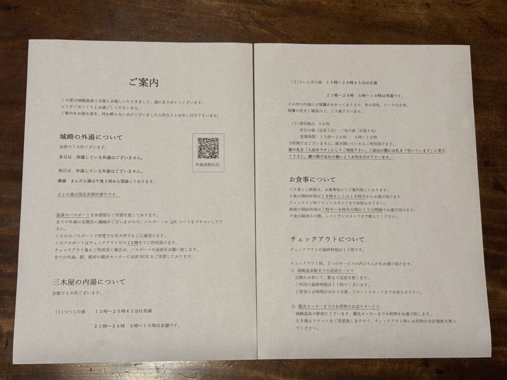 外湯めぐりのパスポート「ゆめぱ」が付いていました。これでチェックイン時〜翌日13時まで外湯に入り放題です♨️