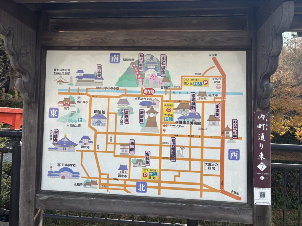 まだ12時ですし、出石に寄って帰ることにしました。宿から車で30分ほどで出石の中心地、出石城跡あたりに到着。