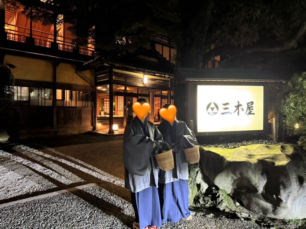 外出用の羽織(紺とグレーの2枚)が用意されています。着ると渋い感じで良いです✨