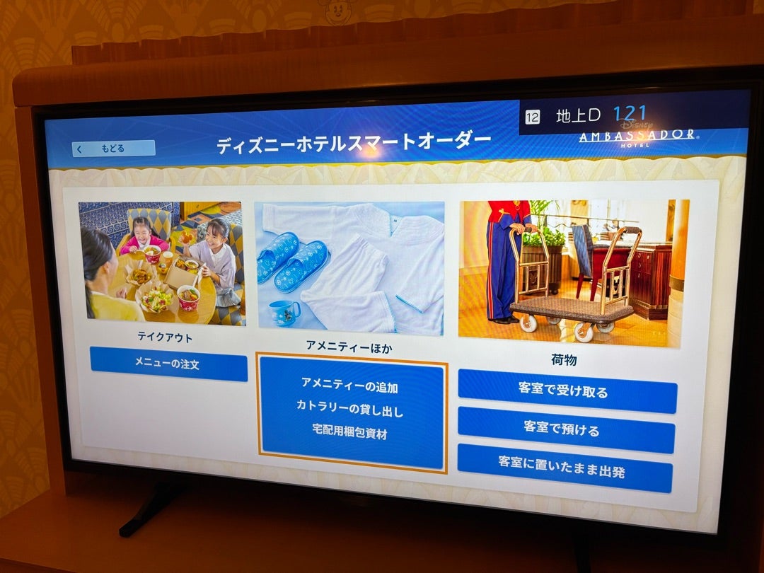 アメニティのオーダーはこんな感じで部屋のTVから、あるいは自分のスマホから、スマートオーダーでできます。