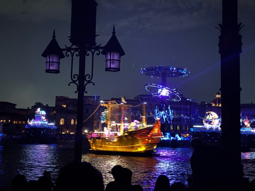 美しい夜のシーを眺めつつエントランスに向かいます。エントランス付近のお土産屋はまだ開いていて、この時間からでもお土産を見て回れました。今日あまりショップを見てなかったのでお土産を軽く見て回ってから、パークを後にしました。(いつもアプリのオンラインショップで買うので、パーク内では見るだけ。すぐ家に届くしすごく便利です
