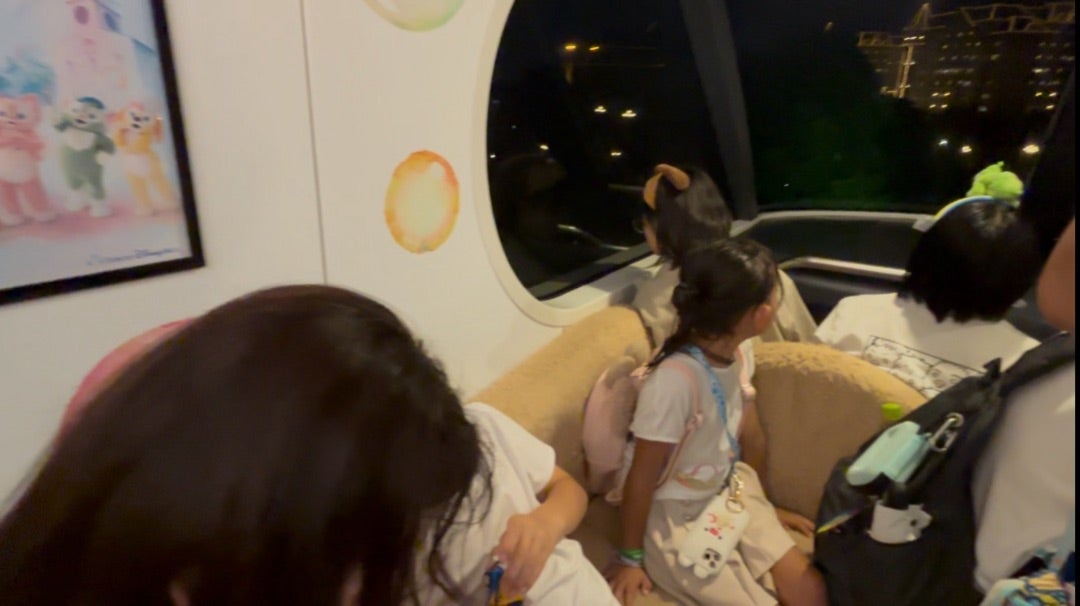 車内もダッフィーデザインで、ソファはダッフィー風ふわふわ生地で可愛かったです![]()