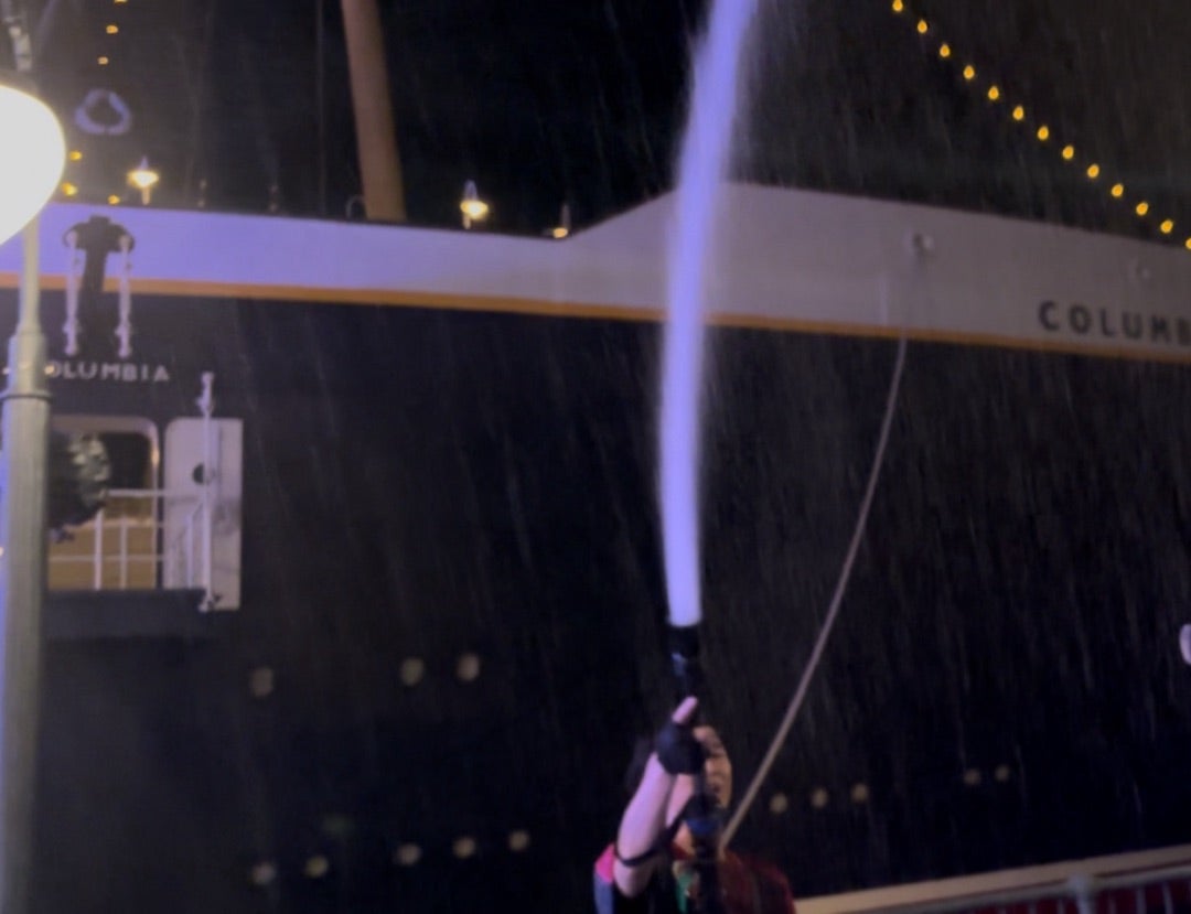 20:50に終演し、即コロンビア号に向かいます。本日最後のイベント、ドックサイドスプラッシュリミックス![]()