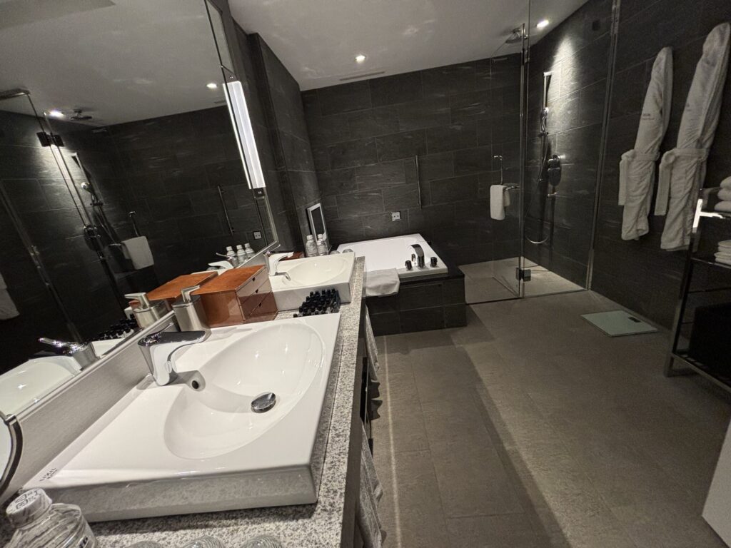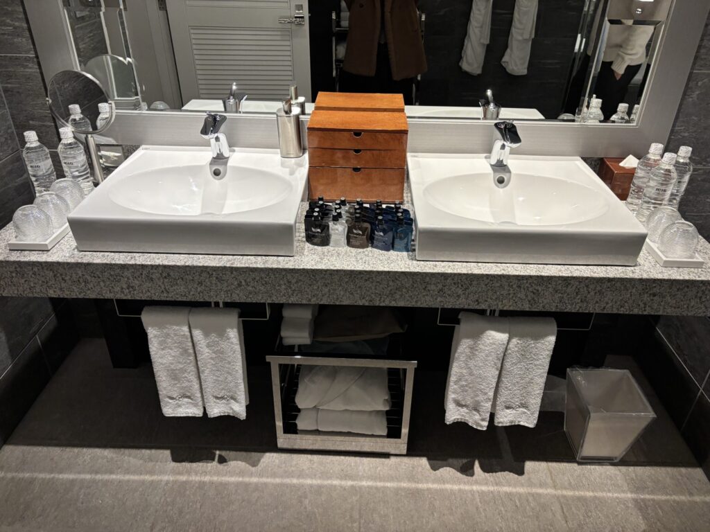 まず洗面所はダブルシンク。(ここのアメニティについてはアメニティの項で後述します)