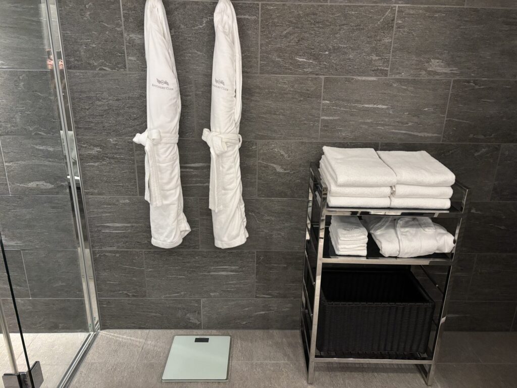 お風呂は撮影ができないため、文章での紹介になります。屋内に温泉・濁り湯・広めのドライサウナ、外に露天風呂とジャグジーがありました。洗い場はすべて個室のシャワールームで、周囲に気を遣わず利用できる点が快適でした。個人的にも好みの造りで嬉しかったです。