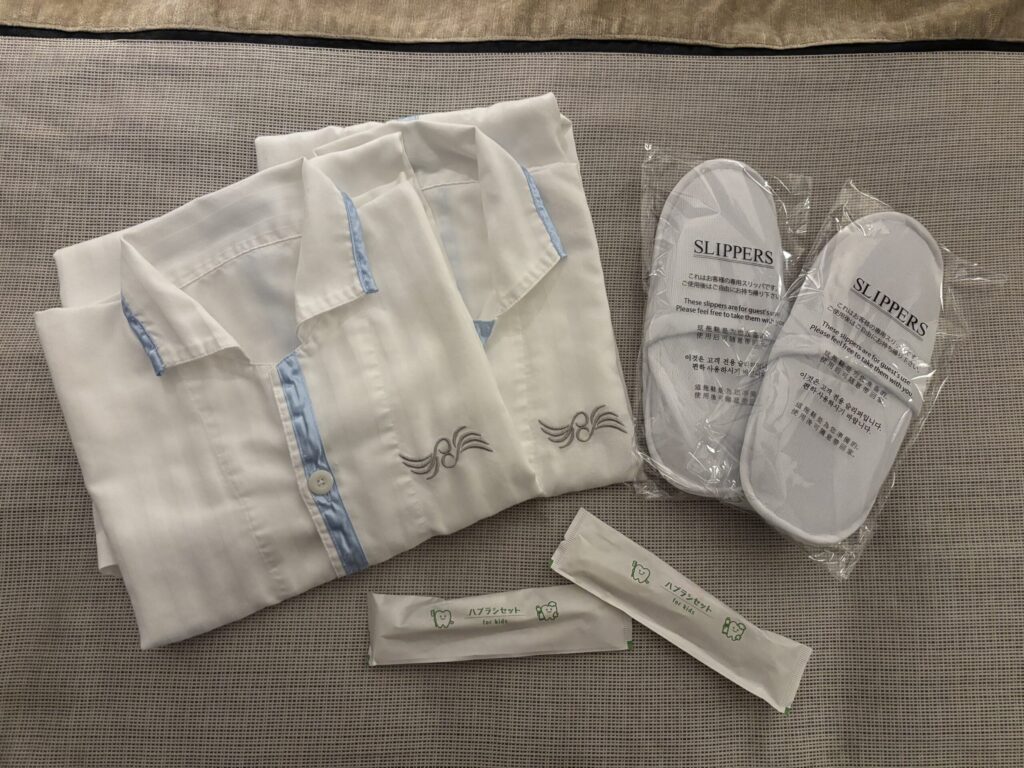 さらに、子供用のバスローブはないか聞いたところ、バスローブはないが子供用パジャマはあるとのこと。一緒に子供用スリッパと歯ブラシも持ってきてくれました。