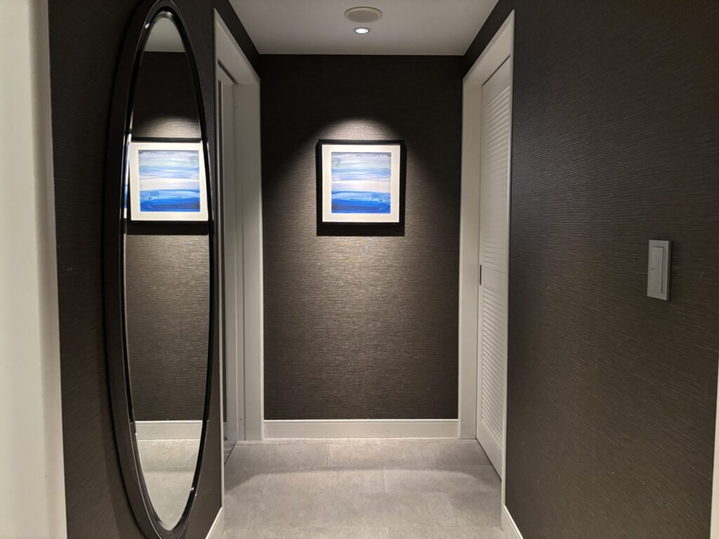 ドアを開けるとまずこの空間。すぐ左がバスルーム、すぐ右がトイレ、奥右がクローゼット。奥の左がお部屋に続きます。