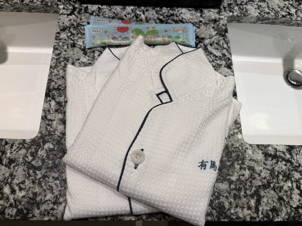 大人用パジャマはセッティングされていました(左)。子供用パジャマと歯ブラシ(右)も持ってきてもらいました。