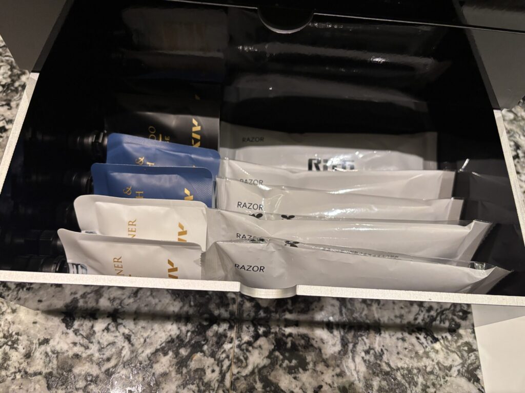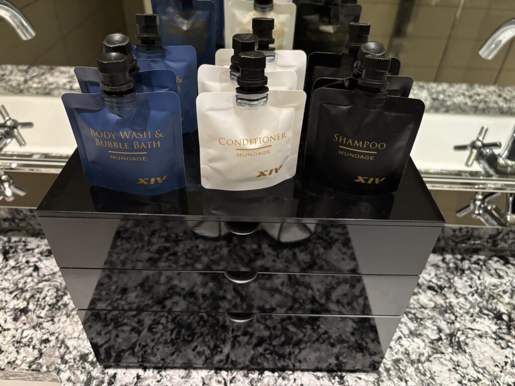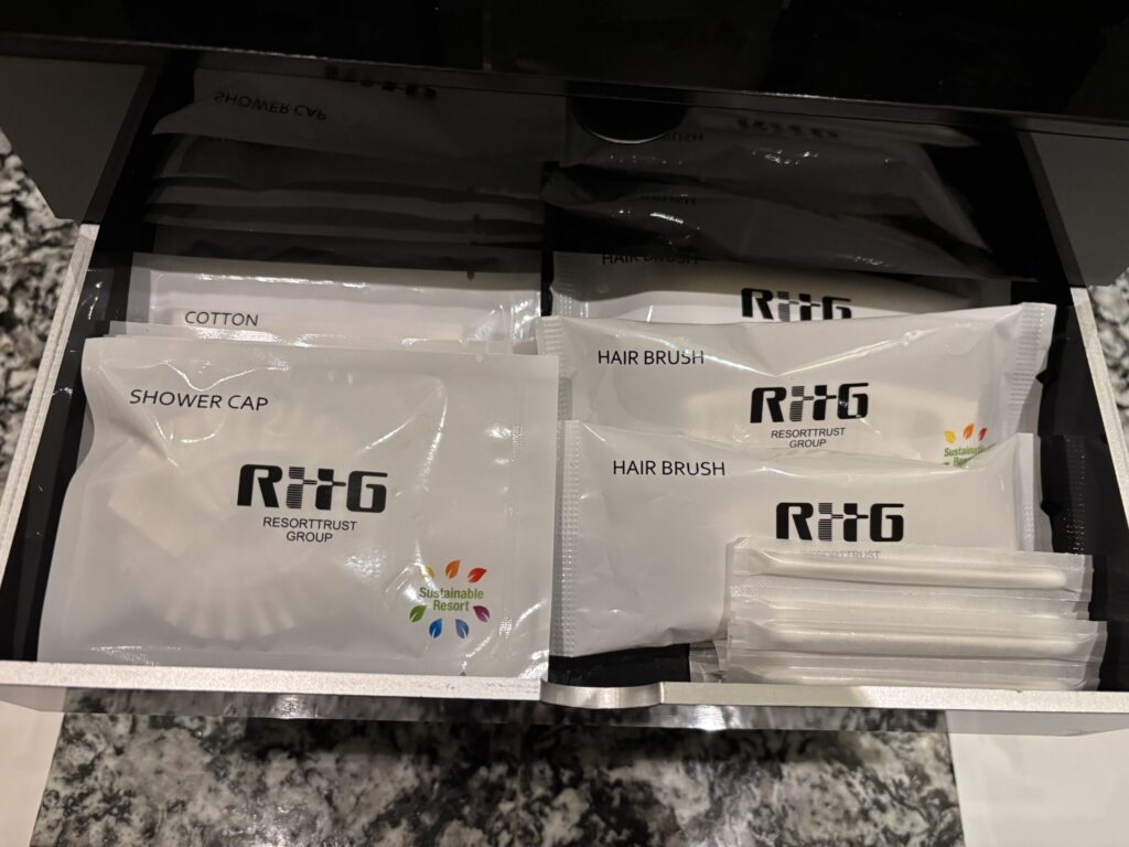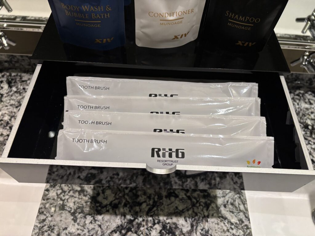 一見、先日のベイコート芦屋と同じかと思ったら、よくみたら微妙に違ってました。ベイコート芦屋にあったパウチのボディローションとバブルバスのパウチ、ヘアゴムがここにはなく、ヘアブラシも簡易的なものでした。ベイコートの方がアメニティが少し充実しているようです。