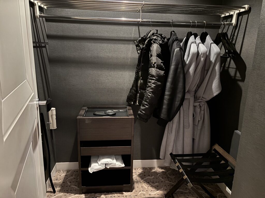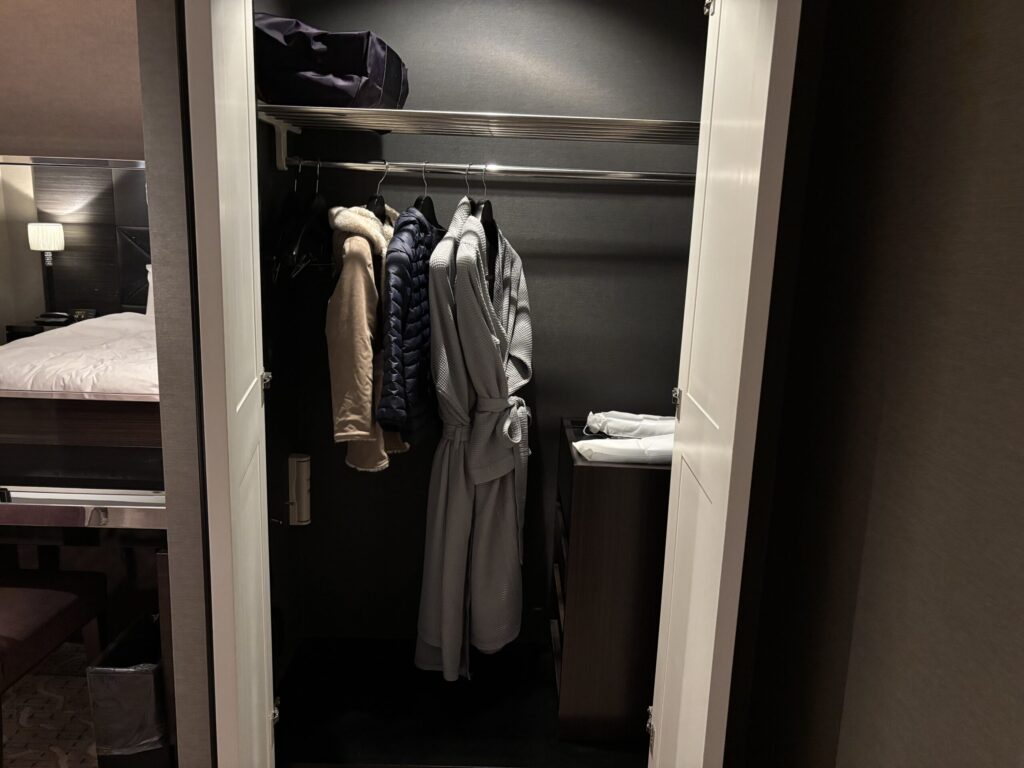 この部屋のクローゼット。さっきのベッドルームよりはコンパクトです。