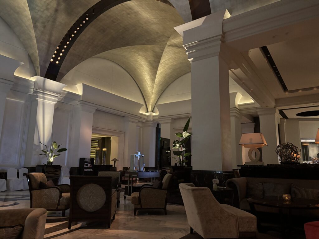 ロビーから奥のレストランへの通路も豪華です。