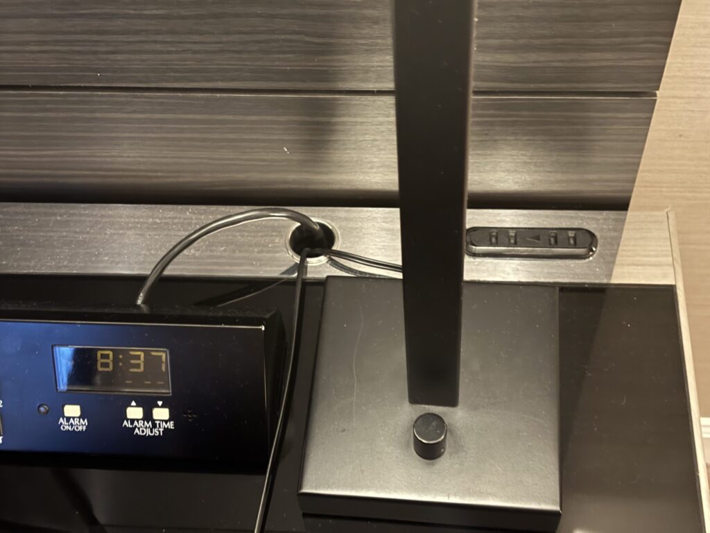ベッド周りのプラグ系はこのコンセントのみ。USBポートが少なかったです。