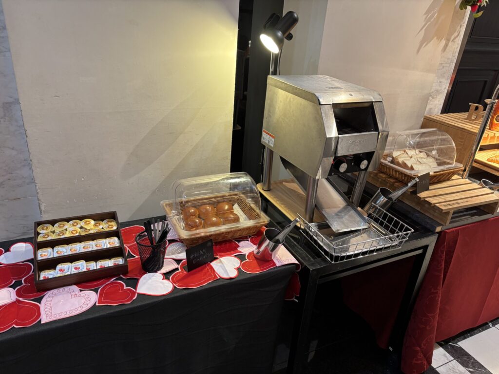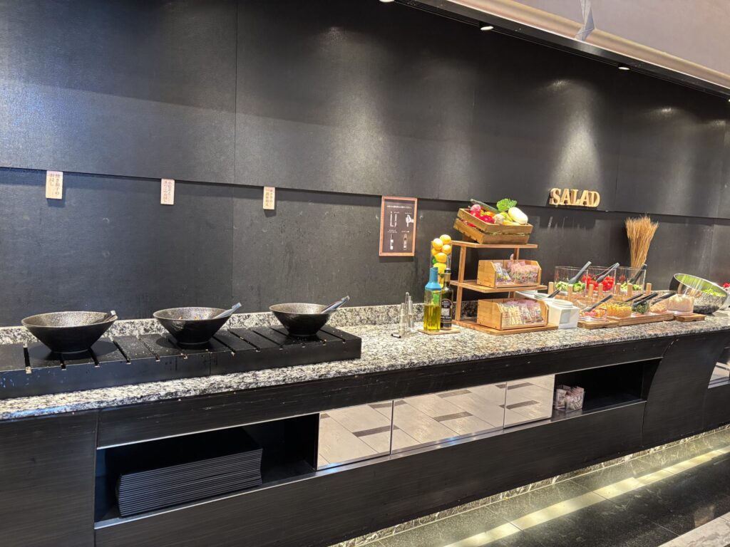 さて、チェックイン時にいただいたカードを持ってラウンジへ。夜も朝も利用しました。