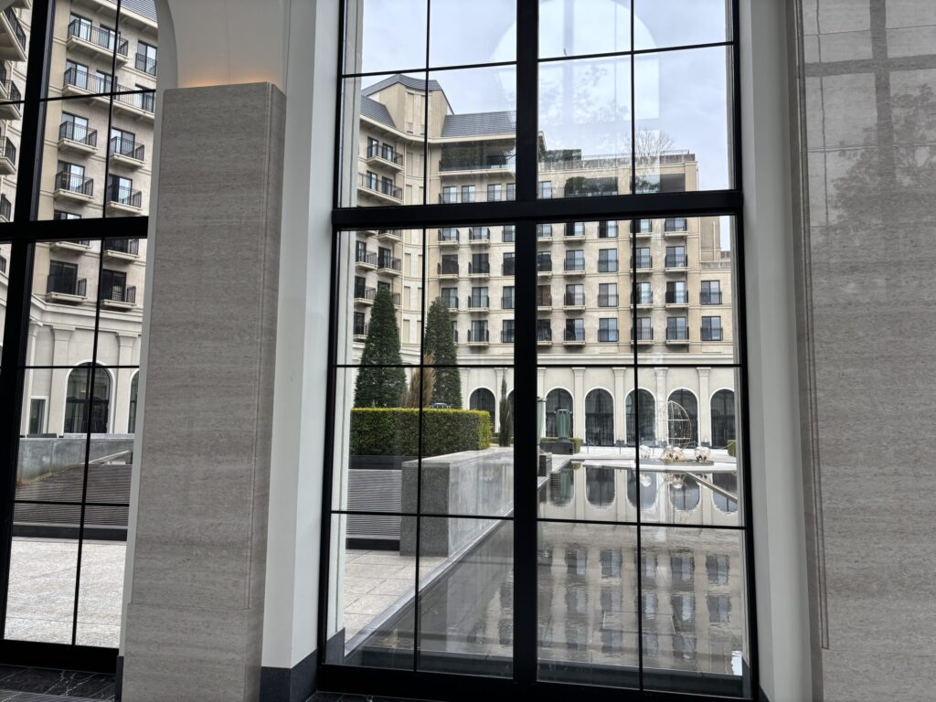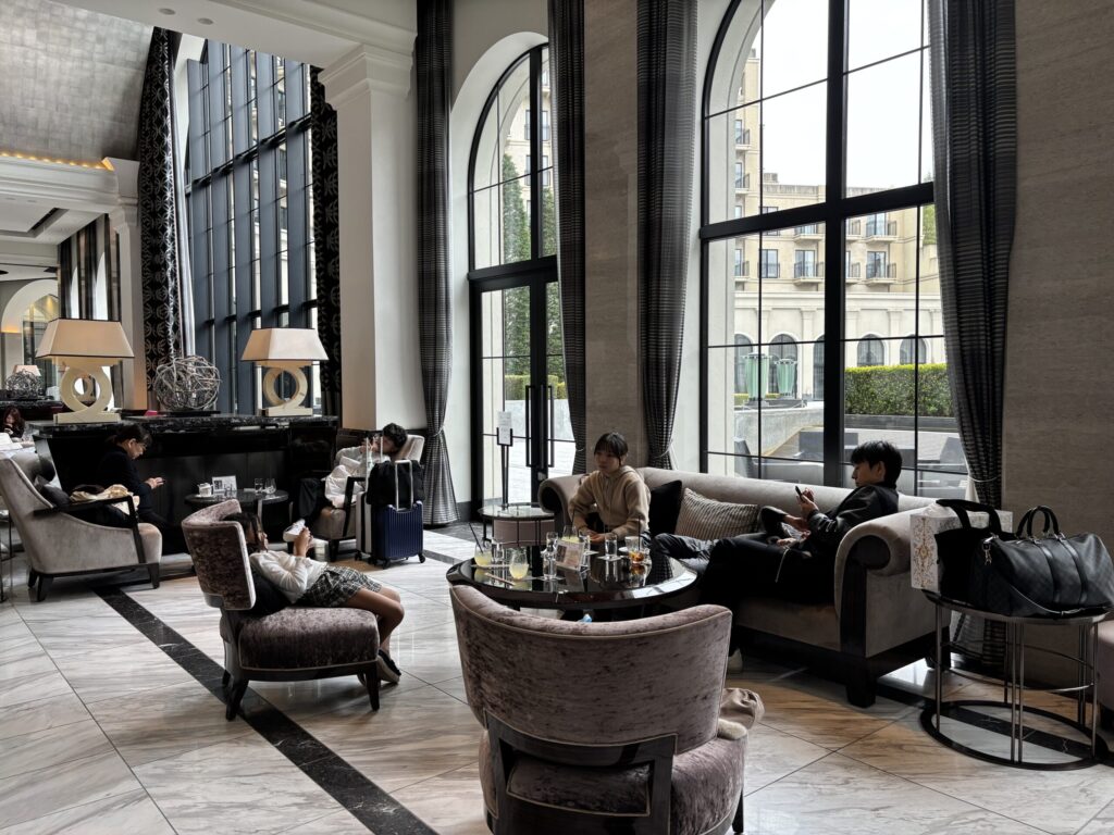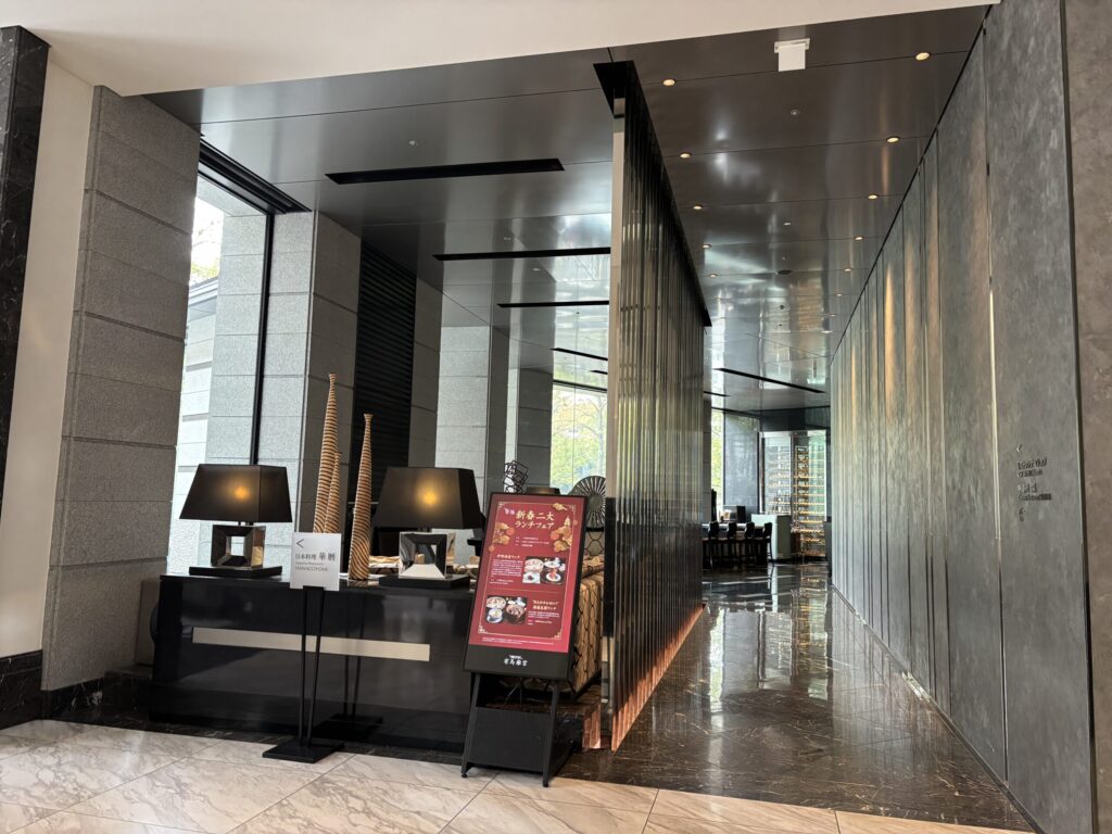 ロビー横の中華料理もシックモダンで素敵そう。窓の向こうの中庭も絵になります✨