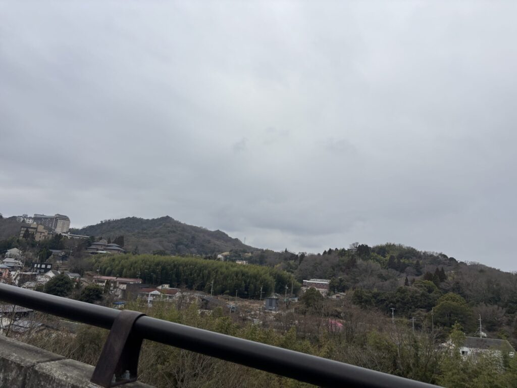 有馬の温泉地に入るとすぐエクシブが見えてきます。写真の左上の大きな建物です。