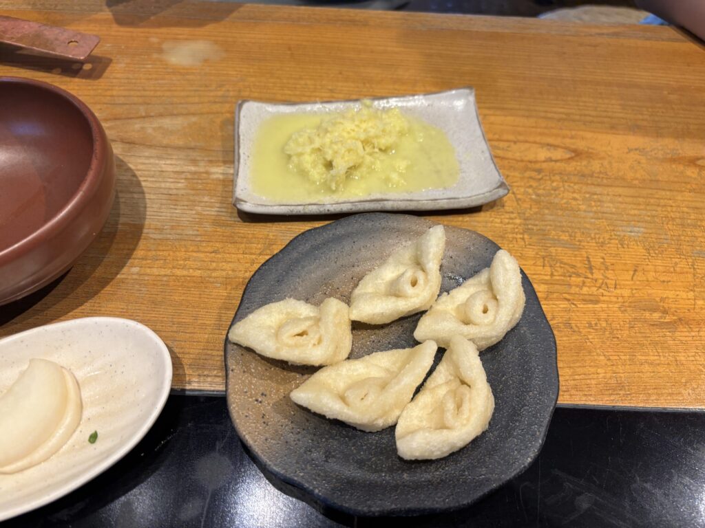 まず最初に出てくるうどんの耳揚げという一品がもちもちで絶品!