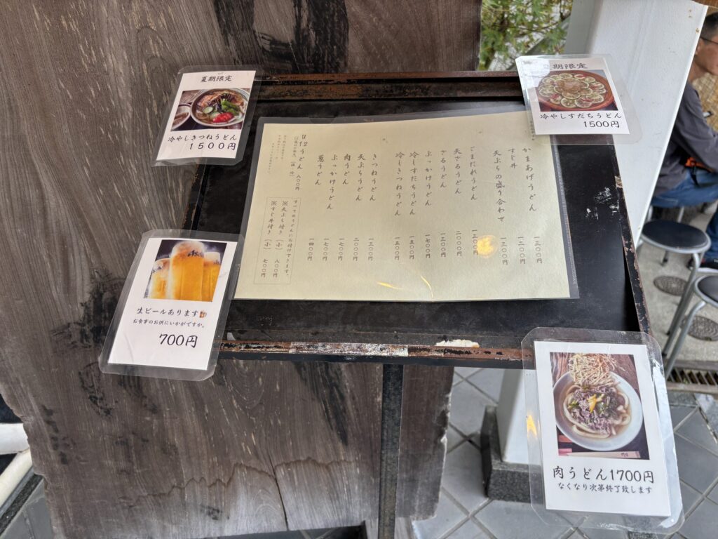 さて、冒頭でお話ししたお店「すじかま」さん。うどんのお店です。店前に大きな釜があります。
