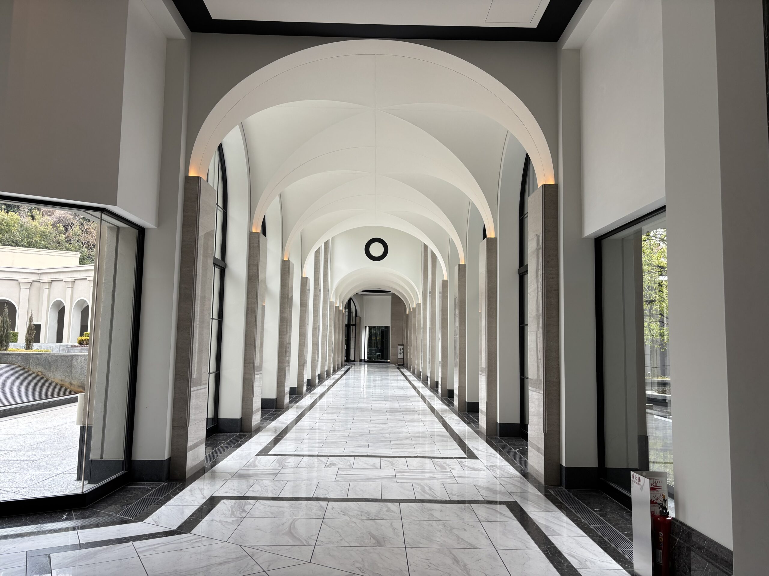 ロビー横の中華料理もシックモダンで素敵そう。窓の向こうの中庭も絵になります✨