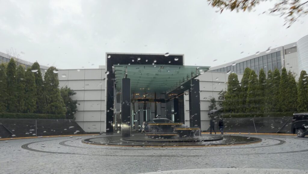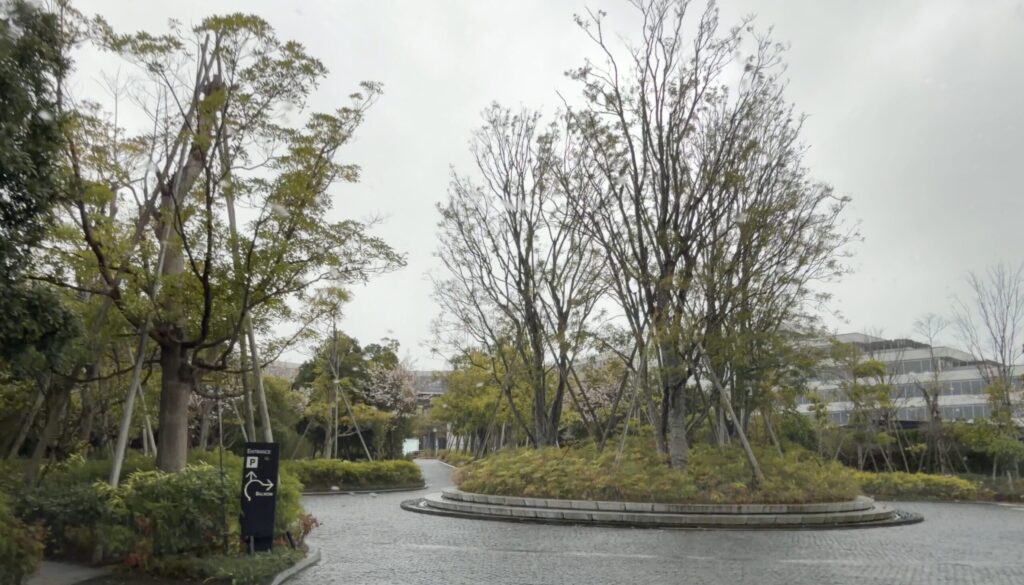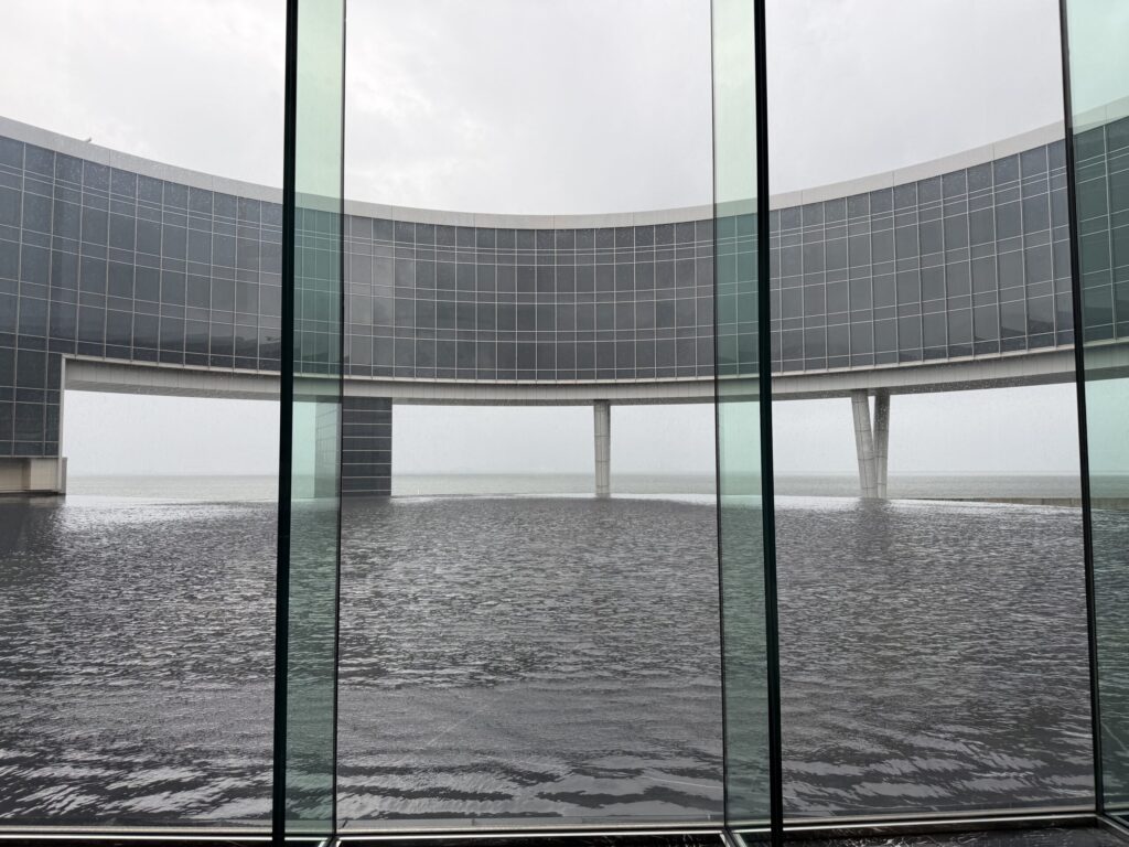 入ると目の前に大きな水盤が広がっています。(この日はかなり悪天候でどんよりしています💦)