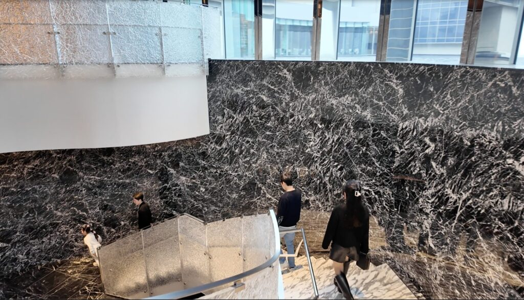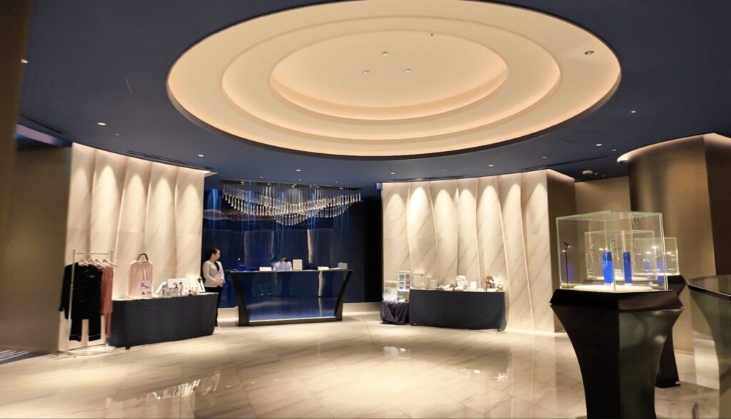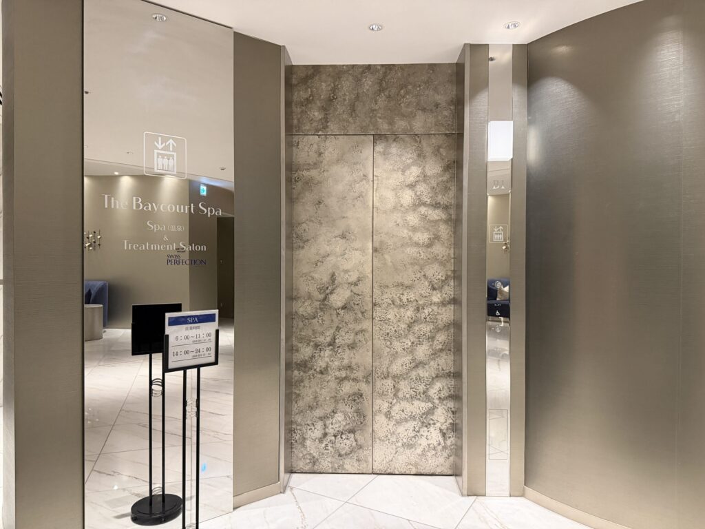 するとスパ施設への入り口が。ここから一つ上の階に上がるとレセプションです。