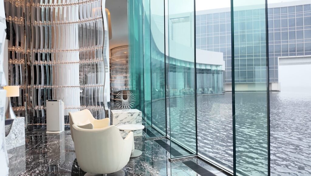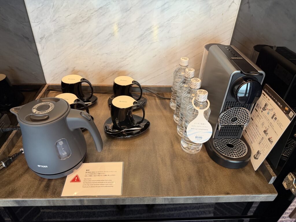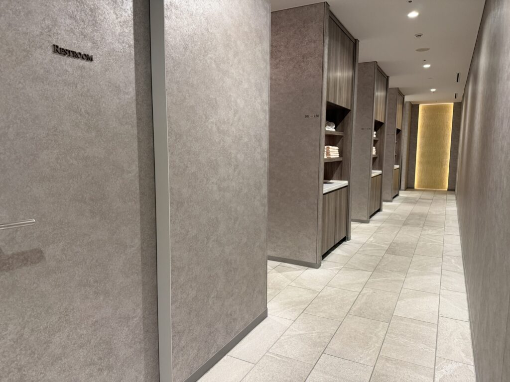またウォーターサーバーに加えて、スポーツドリンクが自由に飲めるようになっていました。(芦屋&東京ベイコートもスポーツドリンクがありました。これが地味に嬉しく、子供達も気に入っています。)奥には一人用ベンチが何個かある休憩エリアもありました。
