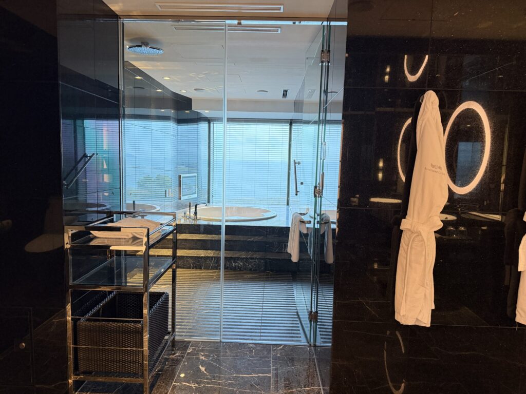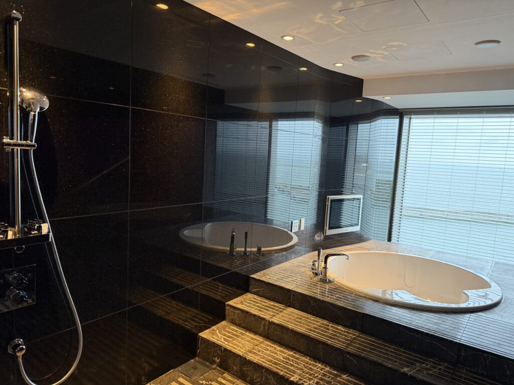 ジャクソン社製の立派なジャグジーでした。ベイコートには「バブルバス」というアメニティがあり、これを入れてジャグジーONにすると泡風呂を楽しめます。子供達が泡風呂に大喜びで、これだけ広い甲斐がありました。洗い場もかなり広いです。
