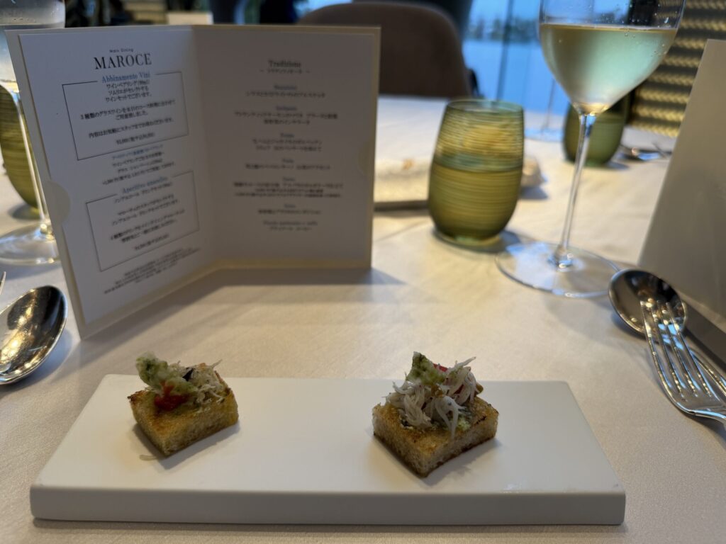 さて、お部屋で少し落ち着いたらディナーへ。「メインダイニング マローチェ」に向かいます。
