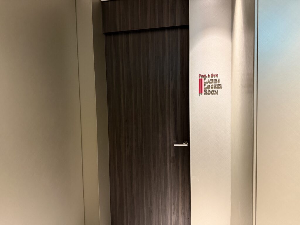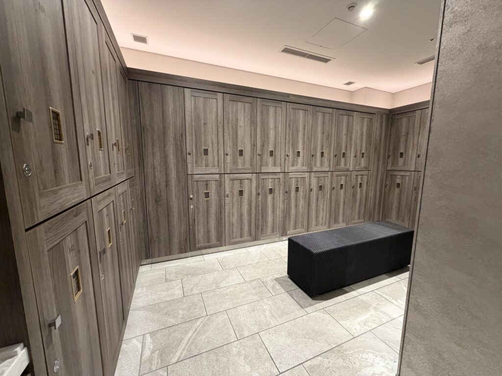 このロッカールームはジム&プール用のようです。(プールはジムの目の前です。)プールが営業外の時期なので誰も利用していませんでした。中はこんな感じで、とても清潔感があり美しかったです。