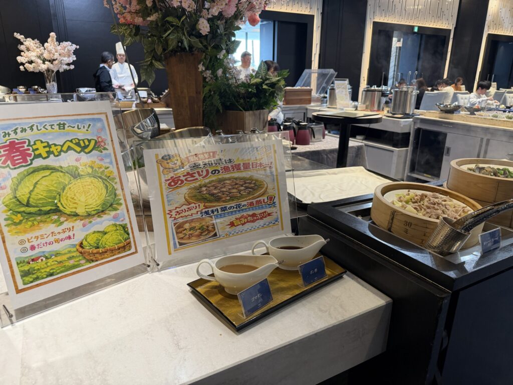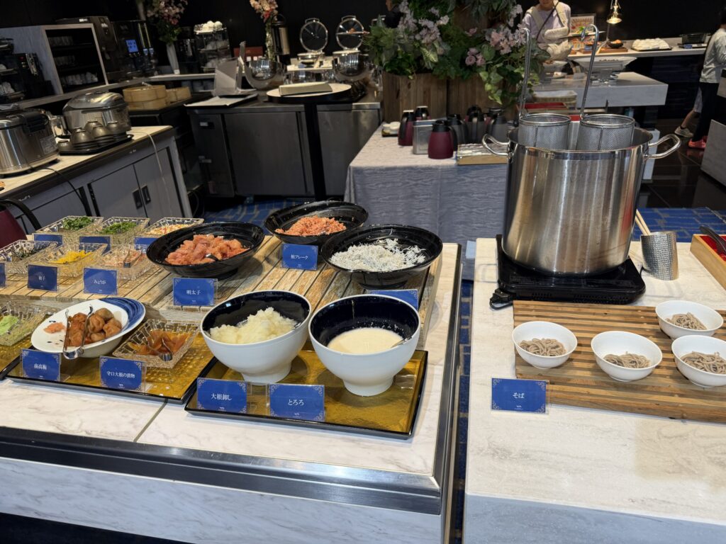 和食コーナーが特に充実していて、シラスや鮭フレークがふかふかで食べやすく子供もたくさん食べていました。蒸し料理や白いオムレツ、炊き込みご飯なども良かったです。