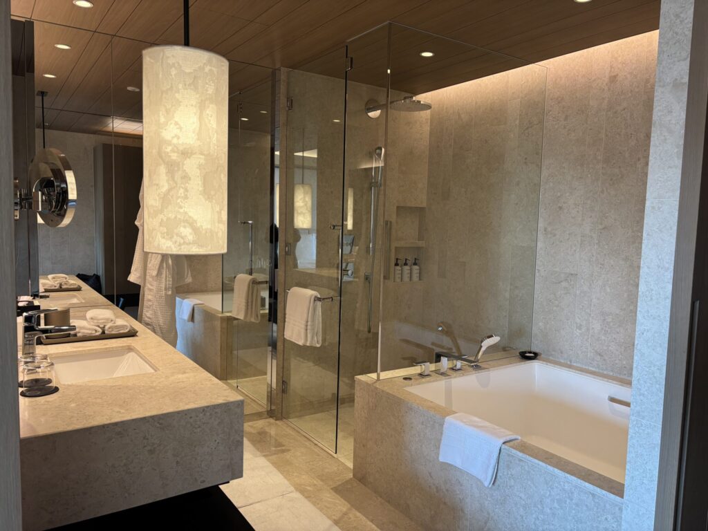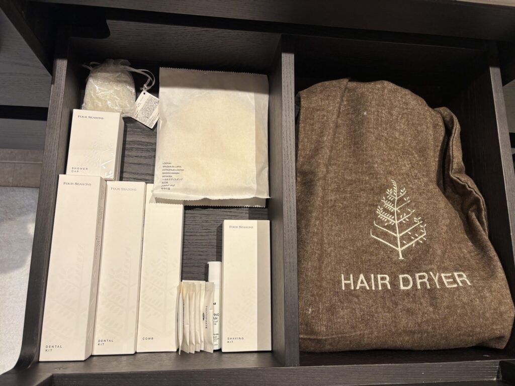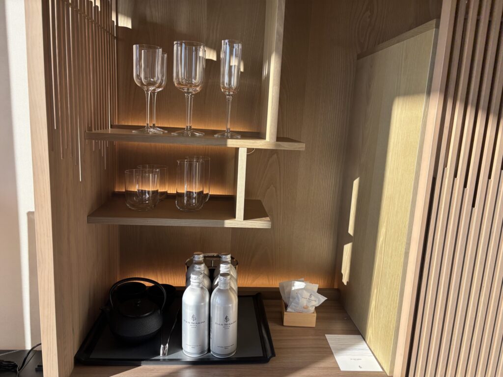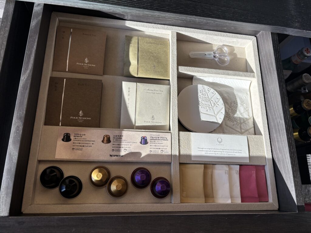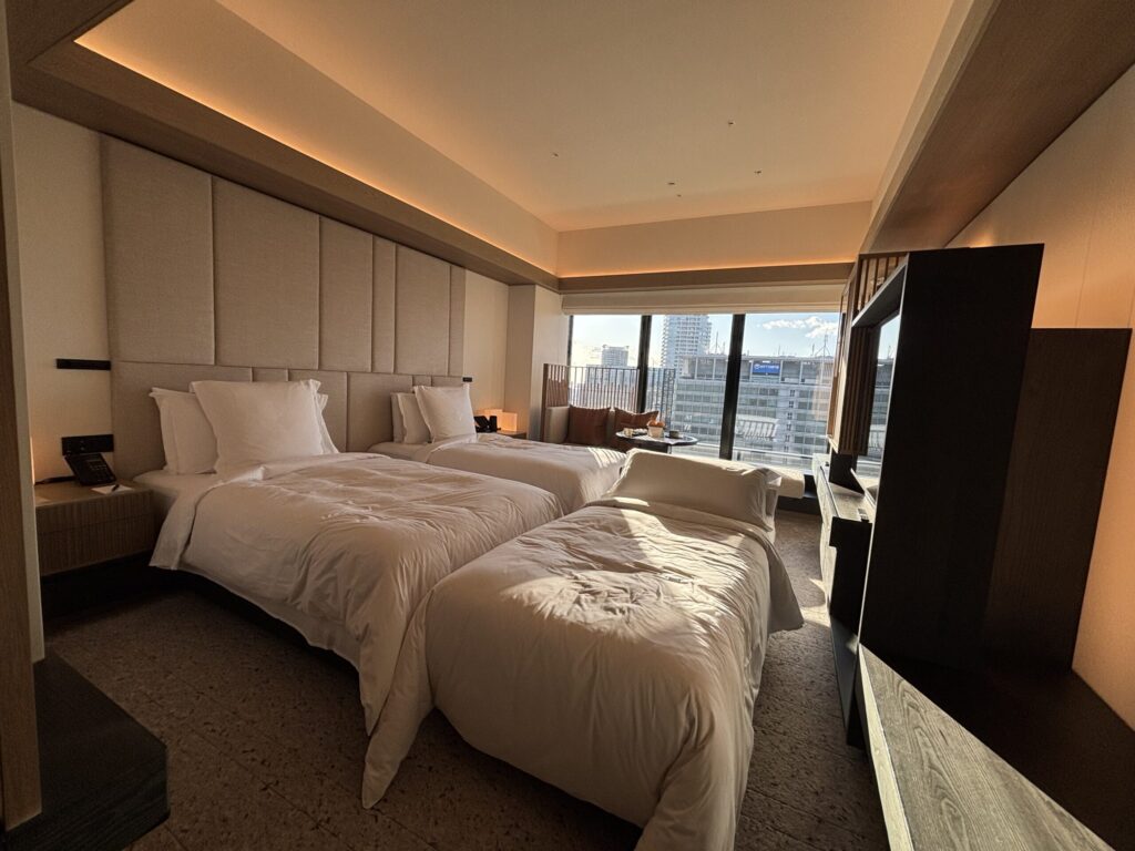 梅田の中心から少し離れた場所に佇むフォーシーズンズ大阪は、小規模で控えめな雰囲気が特徴です。華やかさを前面に出さない分、静かに過ごせる心地よさがあり、都会の喧騒から距離を置きたい滞在に向いていると感じました。
