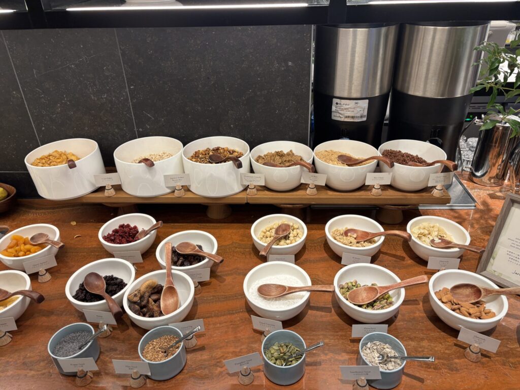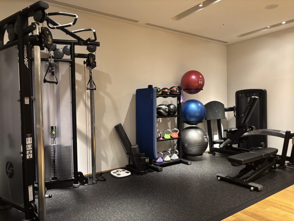 ジムはそんなに広くないですがたくさんのマシンが所狭しと並んでいました。軽くつまめるナッツやドライフルーツがあるのが嬉しかったです。