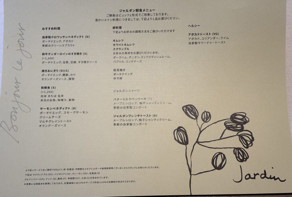 ちなみにジャルダンの朝食にはブッフェではない単品メニューもあります↓