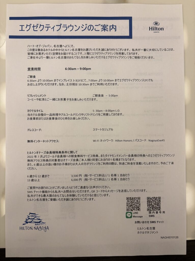 名古屋行きの目的が私の御園座での観劇だったので近くのホテルを探したところ、ヒルトン名古屋が候補に。調べるとつい最近(2025年秋)エグゼクティブラウンジがリニューアルしたと知り、決定。