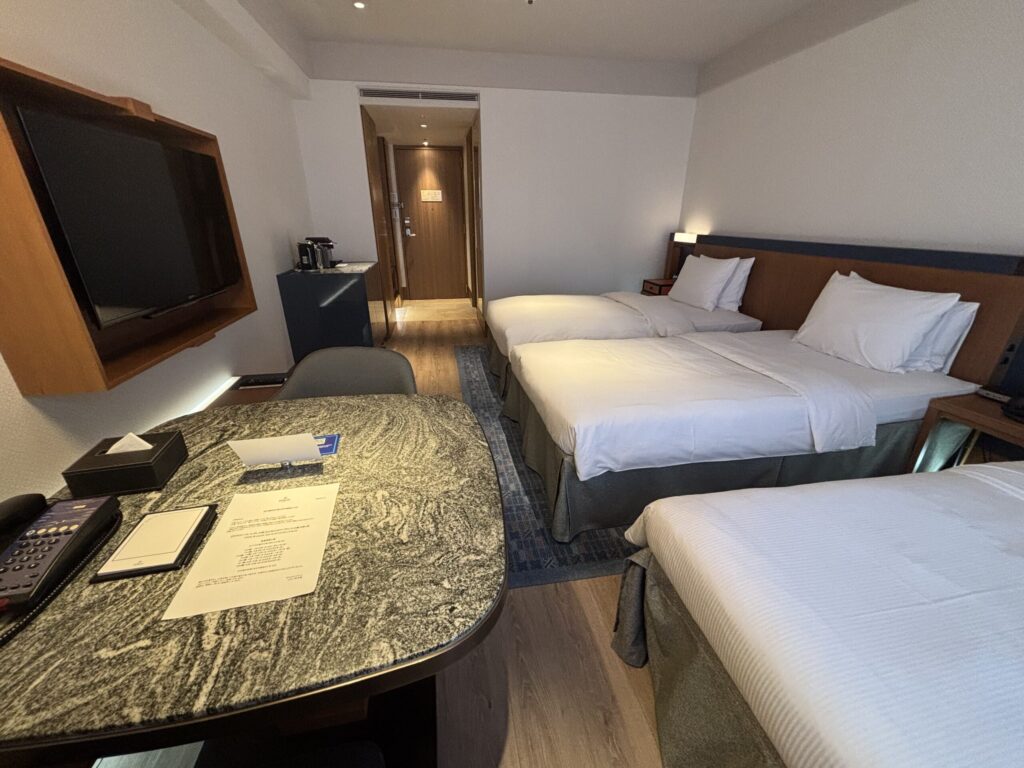 今回宿泊したのは23階のツインのお部屋でした。最初からエキストラベッドが入っていました。