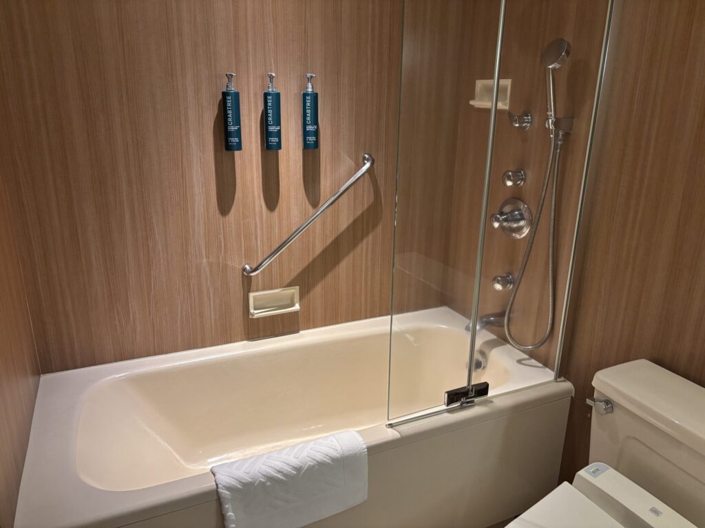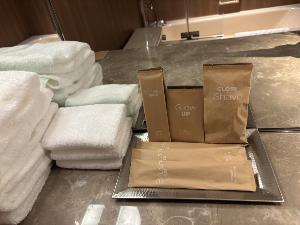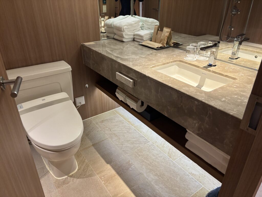 バスルームは手狭でユニット型。でもスパ施設に浴場やサウナがあるのでこちらのお風呂は使わなくて済むので、ここはお手洗いとしてだけ使いました。アメニティは最低限の印象でした。これもスパ施設にはクレンジング・化粧水・乳液などあります。