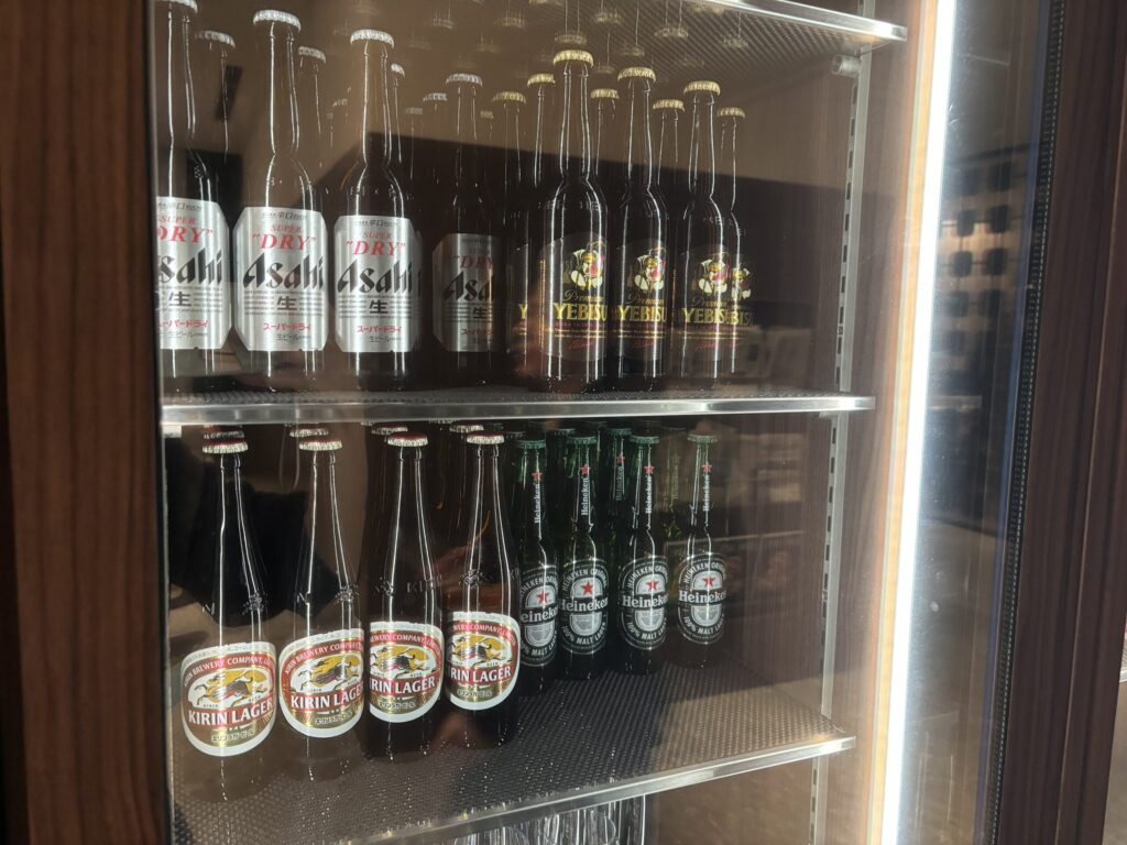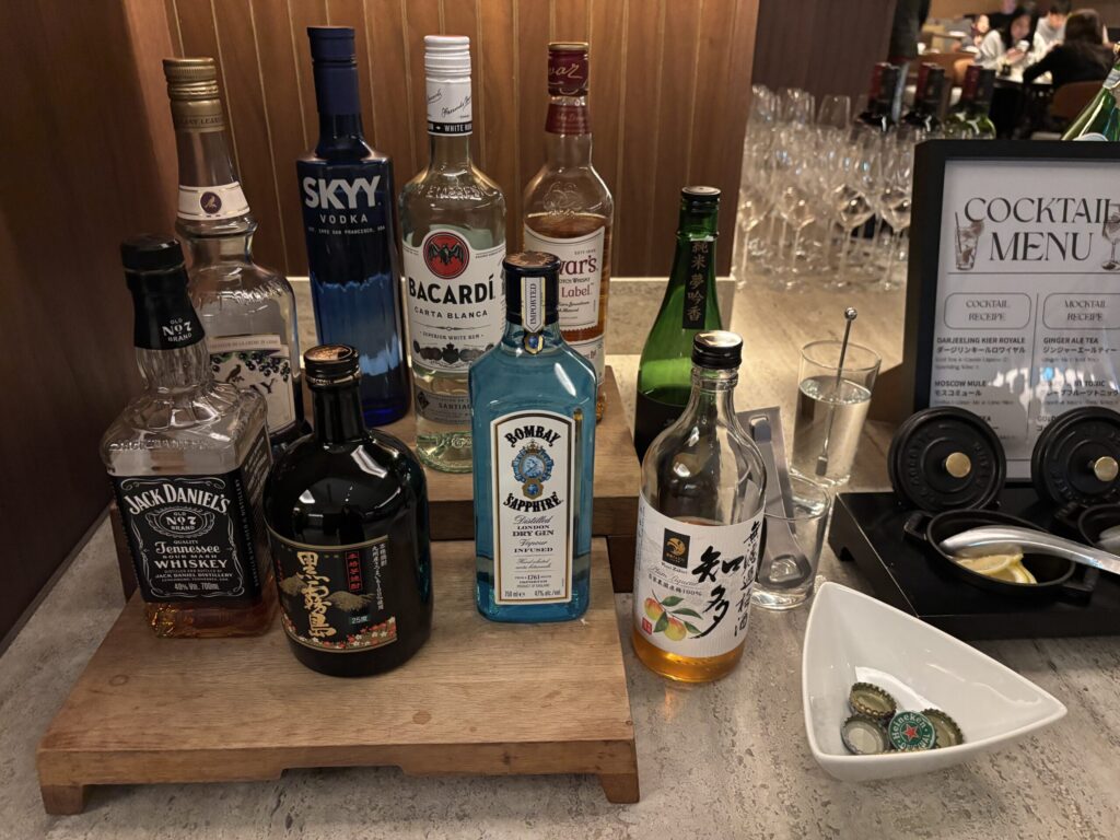 アルコールは、まず冷蔵庫内に瓶ビールが4種類。ワインも赤白泡とも何種類かありました!リキュール類も豊富で、いろんなカクテルの作り方も掲示されてました。アルコールの充実度が素晴らしいです。