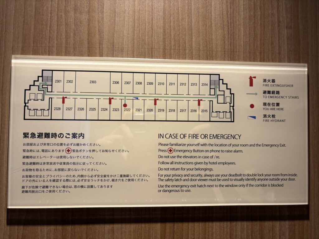 今回のお部屋はこのような位置でした。こう見ると広いお部屋はフロアに一つしかないのですね。