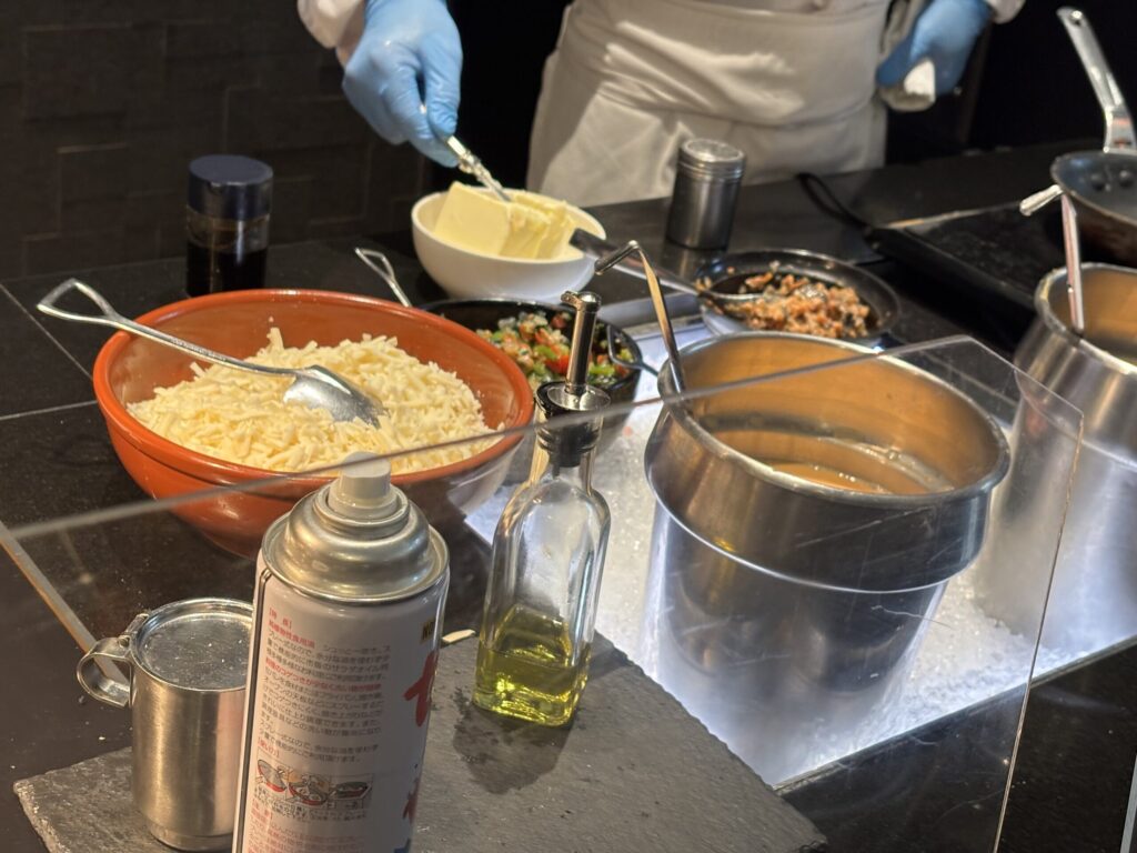 卵料理コーナーでは、オムレツの具材にうなぎが!