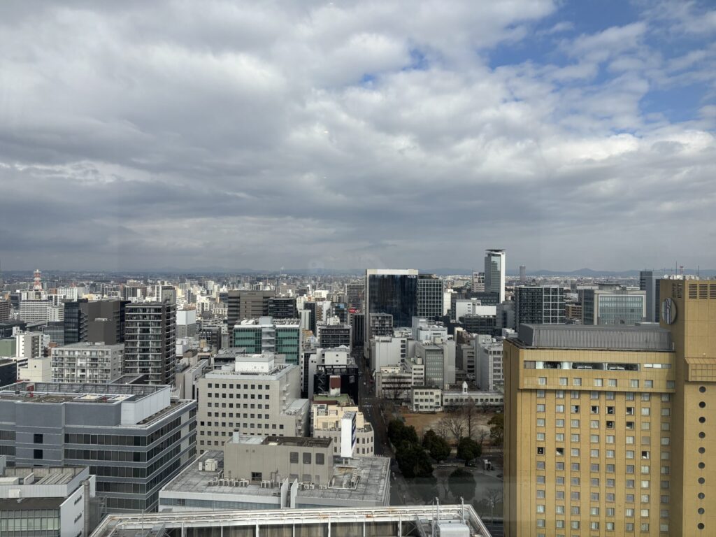 宿泊した23階からの眺めはこんな感じです。名古屋は高層ビルが多くないため、23階ぐらいでもかなり眺望が良いのもポイントです。