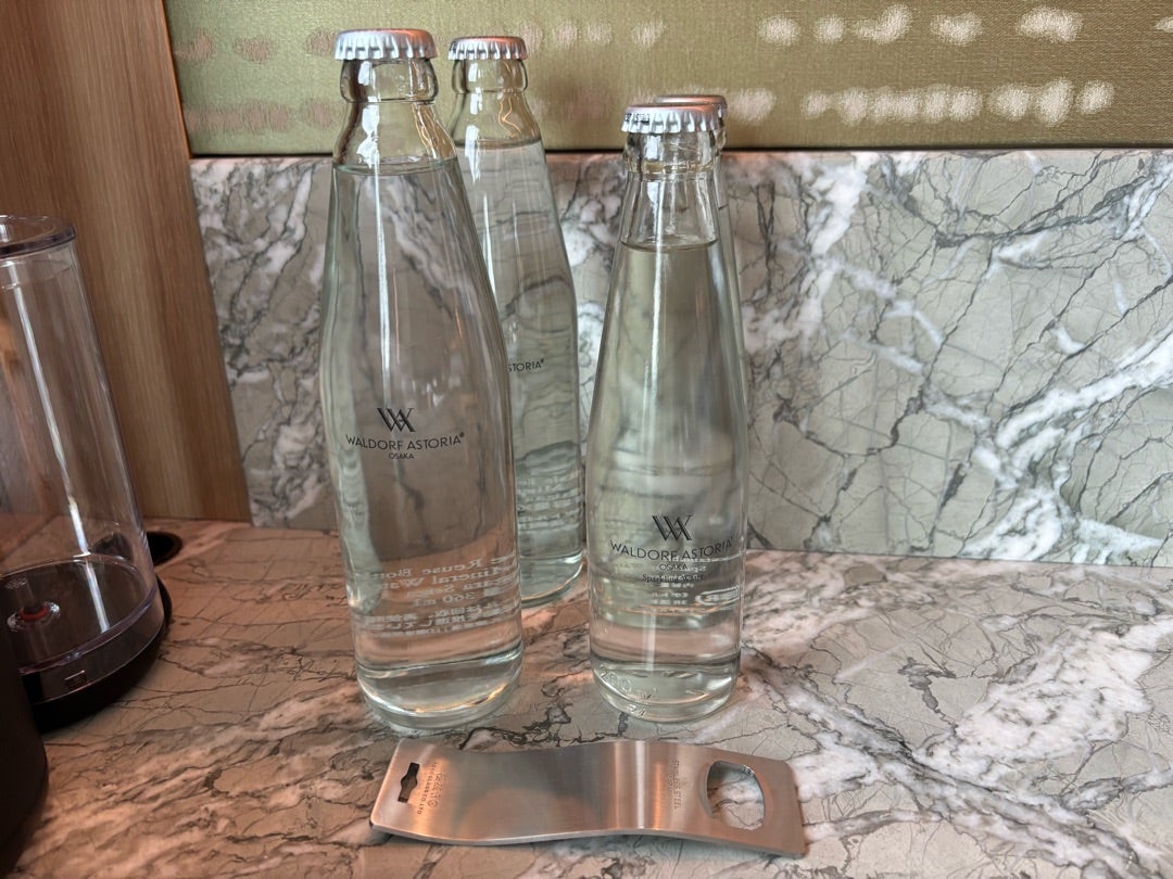 瓶入りお水はスパークリングとスティル、両方ありました。栓抜きで開ける仕様でした。